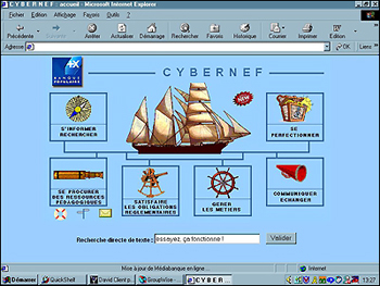 Après nous être concertés avec Philippe de Ladebat, Directeur de la CNEF (Cellule Nationale Emploi Formation ), de 1984 à 2000, et avec Philippe Pingand, Directeur de la société Quid-Novi, l'idée s'est donc imposée que nous devrions envisager une autre alternative. En attendant que le réseau soit plus développé, si l'on réussissait à équiper et à accompagner les responsables de formation nous ferions déjà un grand pas en direction de l'utilisation des NTIC dans le domaine de la formation. C'est donc en avril 1997 que nous avons lancé le projet Cybernef.
